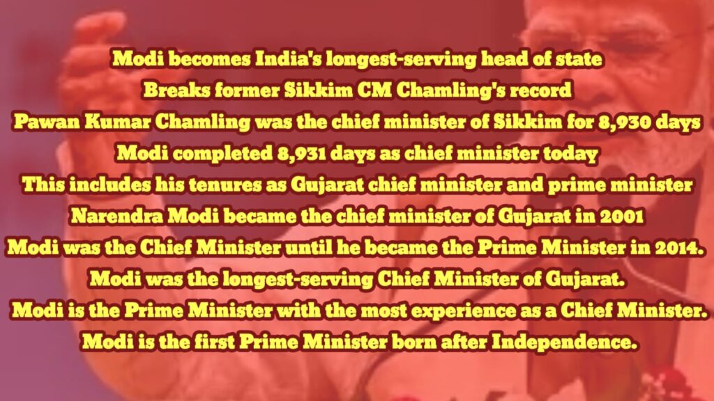 Prime Minister Narendra Modi today made another new record. As a chief minister, he has held the office for 8931 days; earlier, this record was named after the former Sikkim Chief Minister Pawan Kumar Chamling, whose tenure was 8930 days.